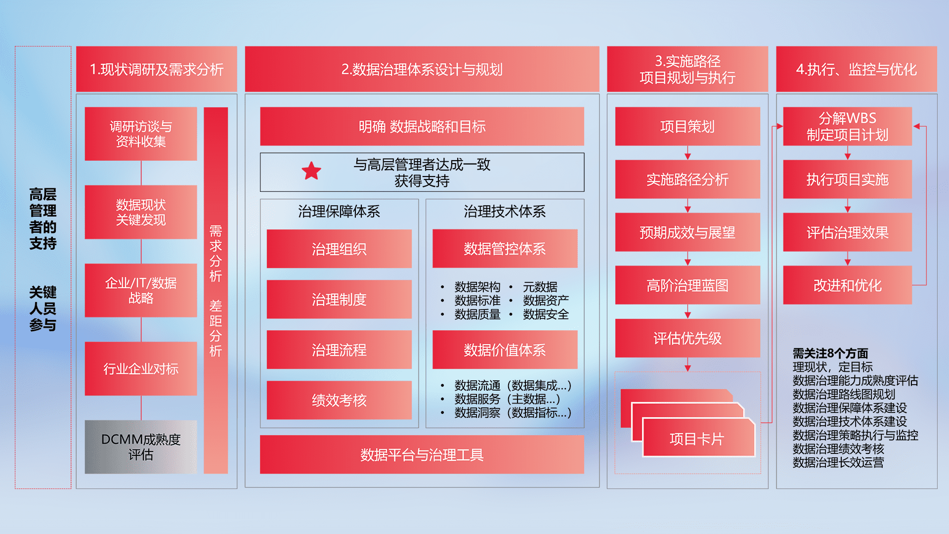 制定并执行统一的数据标准,,规范数据定义和格式,,消除冗余和不一致性,,,实现跨部门和跨系统的数据一致性,,为企业提供标准化的数据基础。。